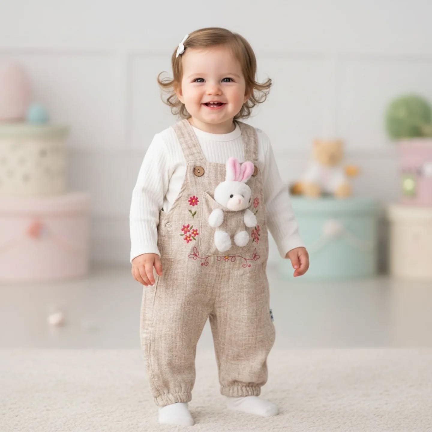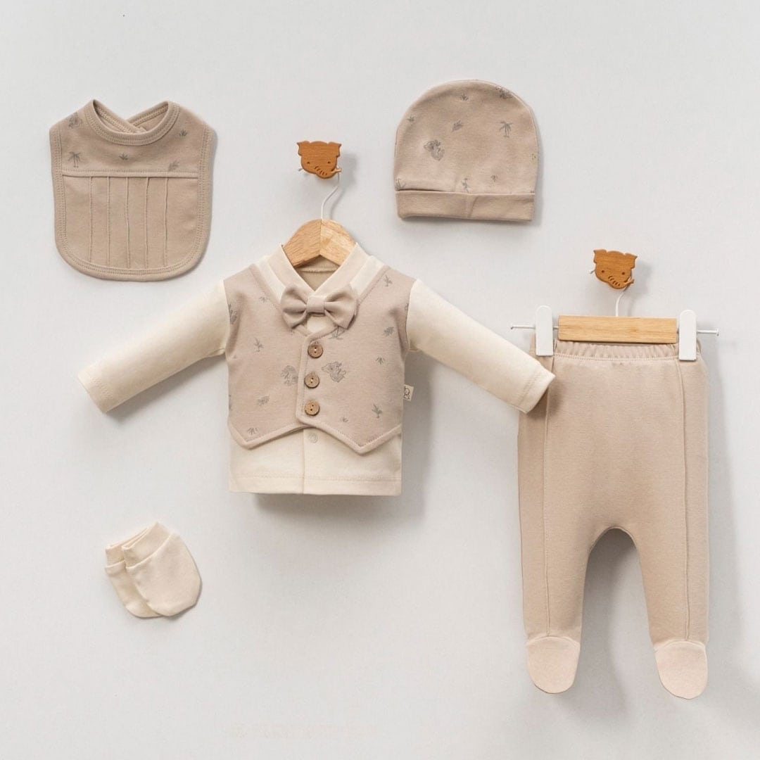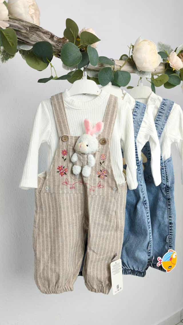 Βρεφική Σαλοπέτα Σετ Με Μπλούζα 🐻 Μπεζ