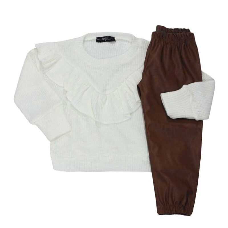 Παιδικό Σετ Μπλούζα Με Βολάν κ Δερματίνη Εκρού