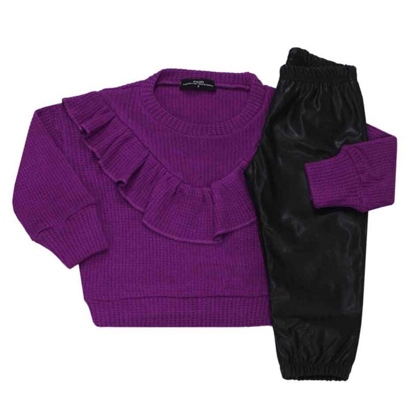 Παιδικό Σετ Μπλούζα Με Βολάν κ Δερματίνη Μωβ