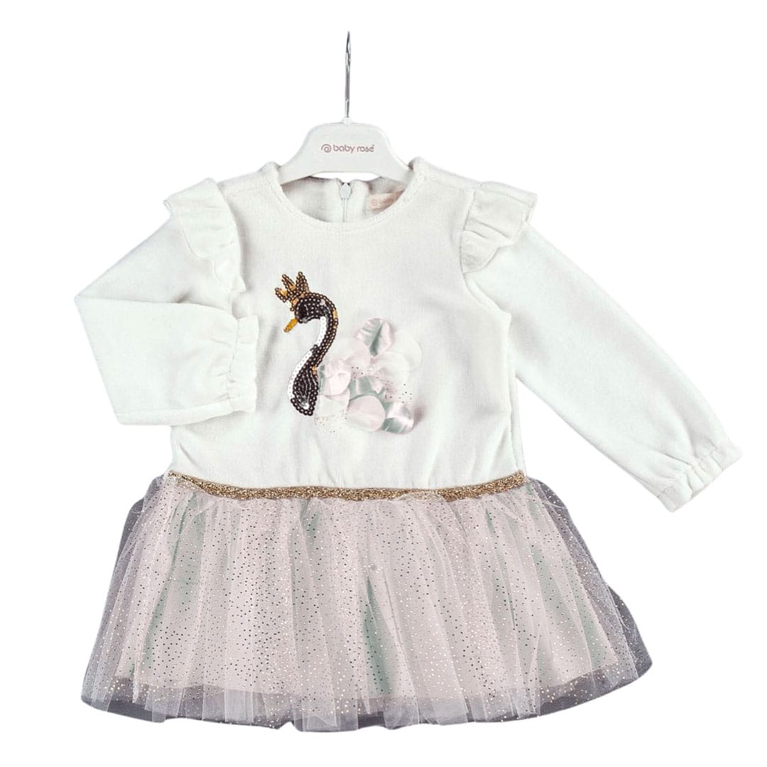 Βρεφικό Φόρεμα Βελούδινο Με Τούλι Swan Εκρού