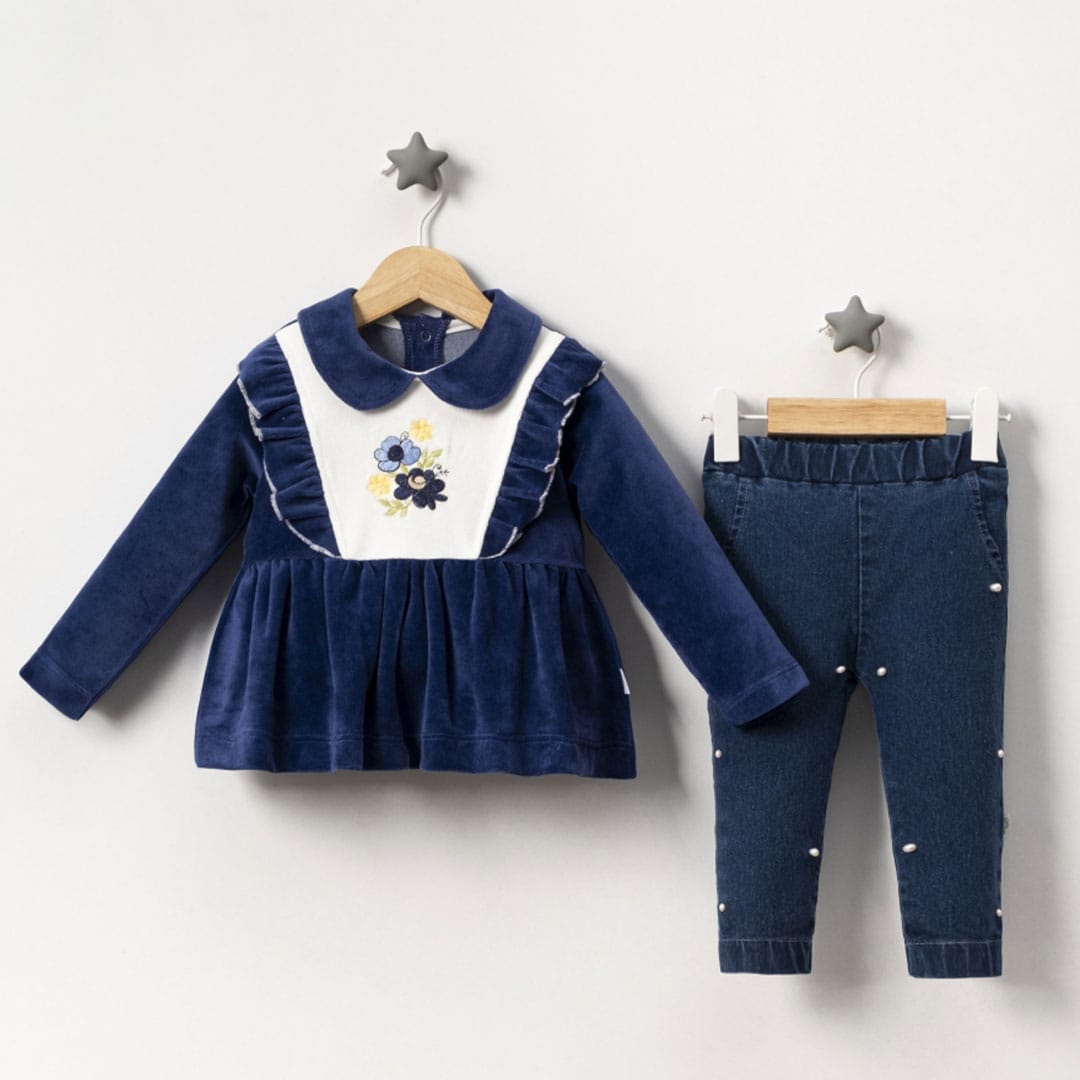Βρεφικό Σετ Βελούδινο Με Τζιν Μπλε