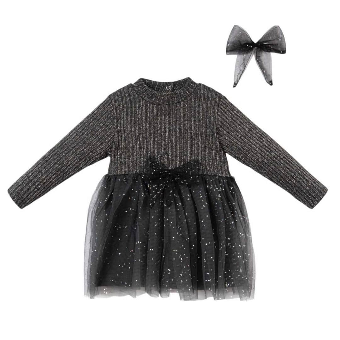 Βρεφικό Φόρεμα Πλεκτό με Τούλι Μαύρο