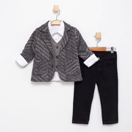 Παιδικό Σετ 3 Τμχ Με Πουκάμισο κ Ζακέτα Μπεζ