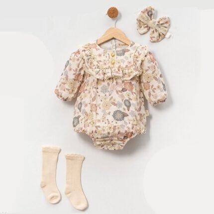 Βρεφικό Φορμάκι Μακρυμάνικο Cherry Μπεζ 100% Βαμβάκι