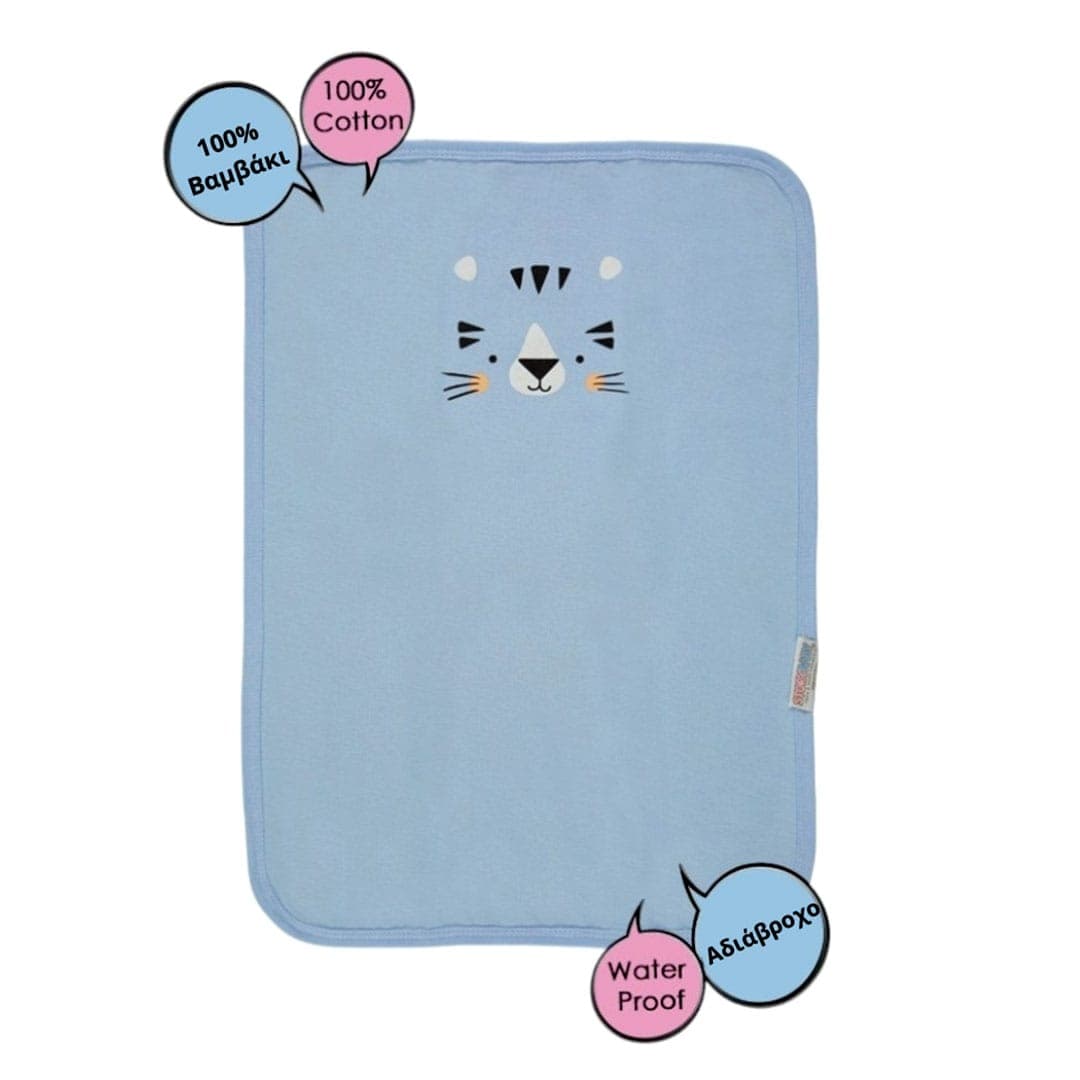 Αδιάβροχο σελτεδάκι μωρού σιελ, 100% βαμβακερό. Πρακτικό και απαραίτητο για καθημερινή αλλαγή πάνας.
