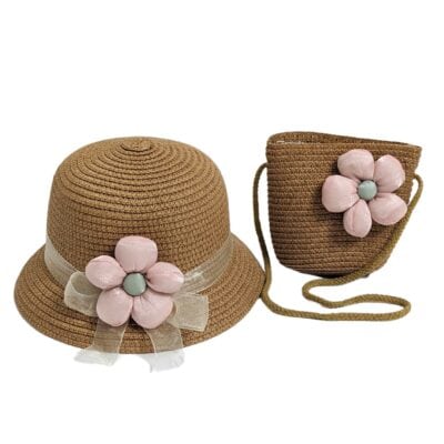 Παιδικό Καπέλο Ψάθινο Σετ Με Τσαντάκι Tulipe 3-7 Χρονών Καφέ