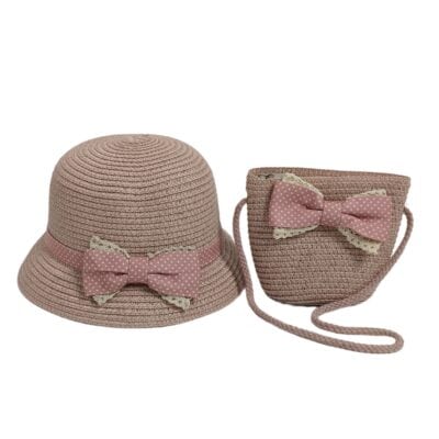 Παιδικό Καπέλο Ψάθινο Σετ Με Τσαντάκι Bow 1-4 Χρονών Ροζ
