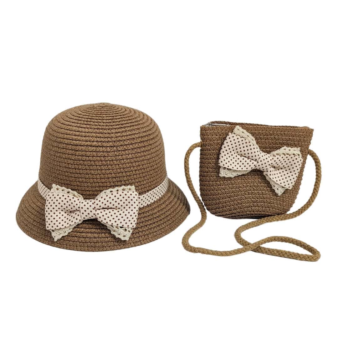 Παιδικό Καπέλο Ψάθινο Με Τσαντάκι Bow 1-4 Χρονών Καφέ
