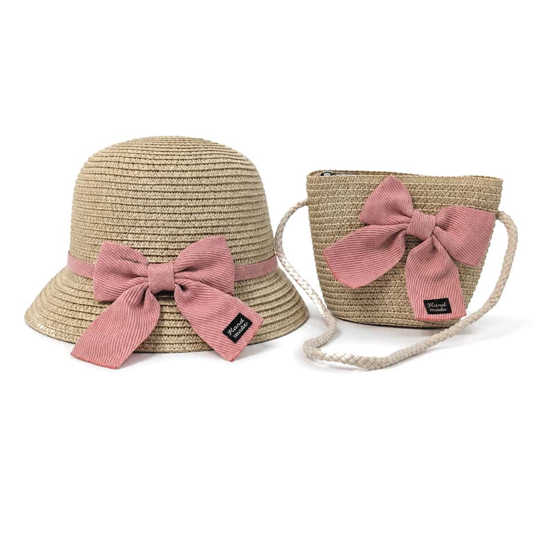 Παιδικό ψάθινο καπέλο με τσαντάκι φιόγκος