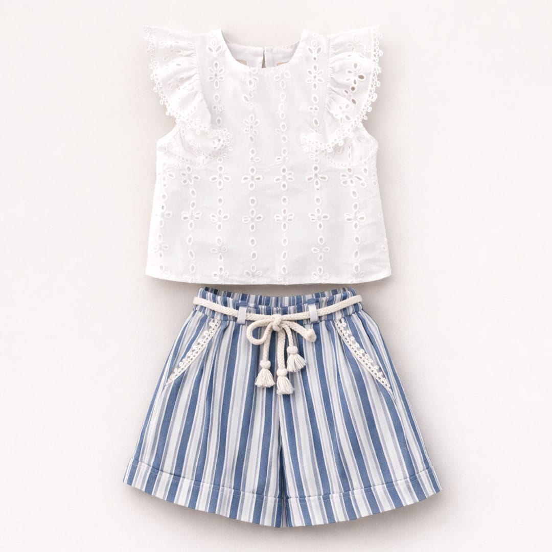Παιδικό Σετ Μπλούζα Με Βολάν κ Δερματίνη Εκρού