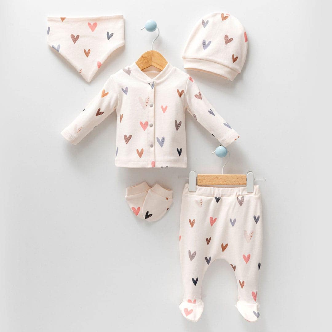 Σετ Νεογέννητου 100% Οργανικό Βαμβάκι Καρδούλες