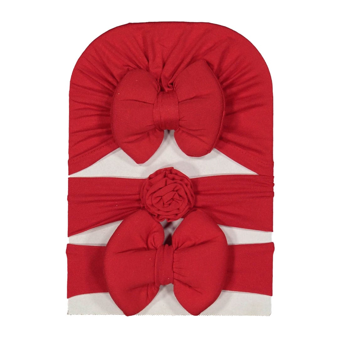 Βρεφικό Σετ Τουρμπάνι Με Κορδέλες Κόκκινο 3 τμχ