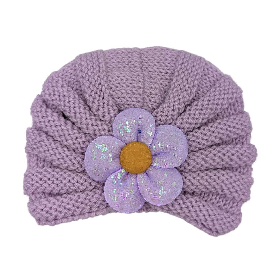Βρεφικό Τουρμπάνι Πλεκτό Flower Μωβ
