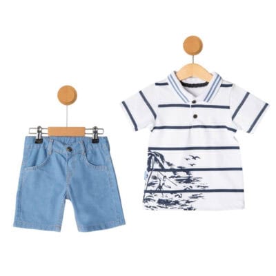Παιδικό Σετ Με Τζιν Σορτς Λευκό