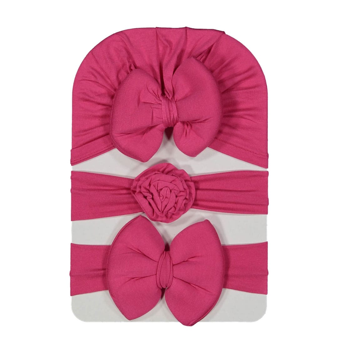 Βρεφικό Σετ Τουρμπάνι Με Κορδέλες Φούξια 3 τμχ